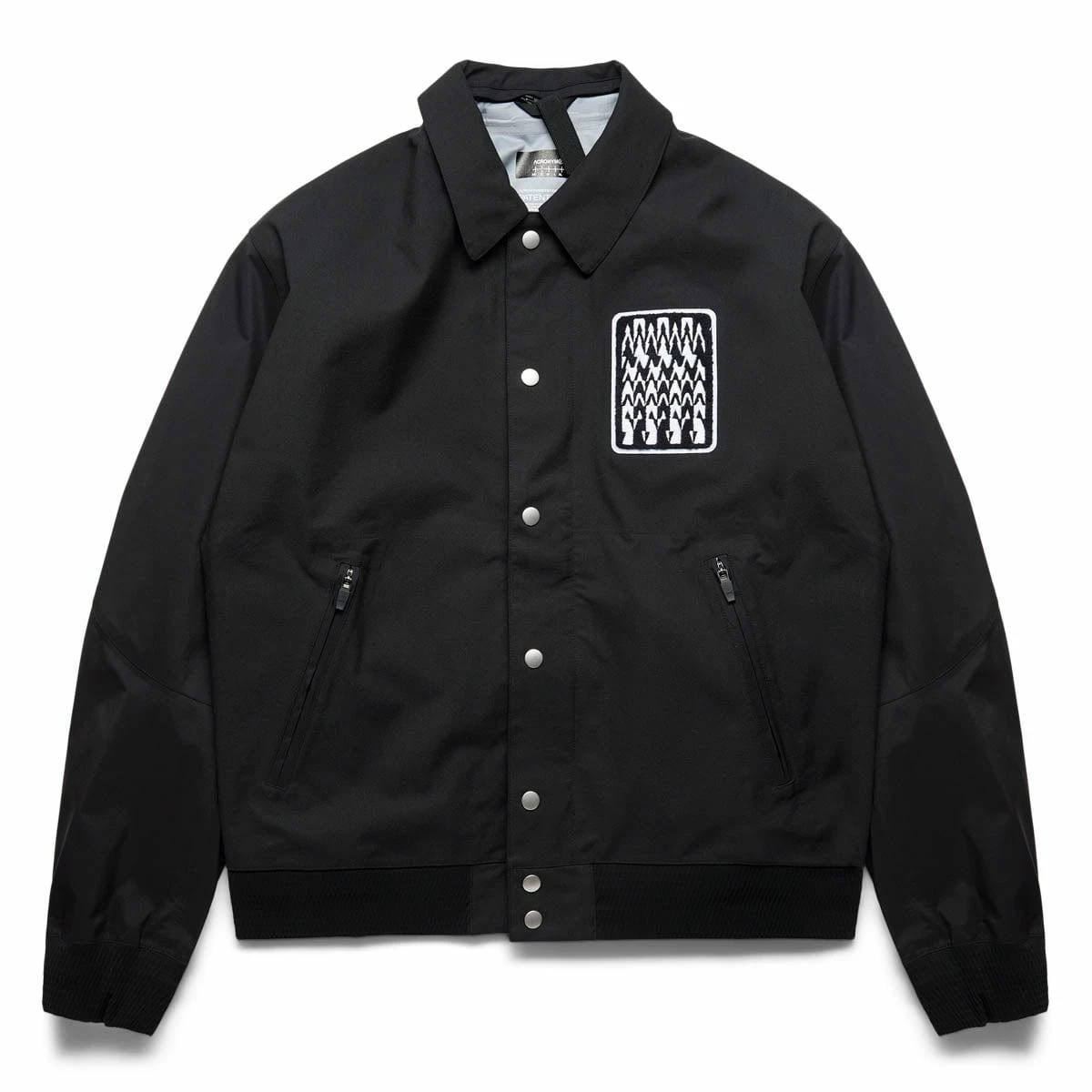No school as school. No team as team. J94 is only the second time Acronym has interpreted the varsity jacket and this time the visual cues are all that remain. On a technical level, this is on another level. 3-layer composite body and sleeve fabrics means the jacket weighs in at just over 500 grams. Fully taped construction means wind and water invulnerability and true all season use. Dimensional flex laminate hem and cuffs mean the slickest possible care-free closures are also breathable and waterproof. 2 stage centre front closure means one hand and snap for convenience, or 2 hands and zip for a complete weather seal. Jacketsling means you can stop thinking about it when you stop wearing it. Chenille ‘Wildcard’ graphic on left chest (no letter as letter) and ‘delta-Ǎ’ embroidery on cuff. Pair with FC3-GT for complete wet weather protection.