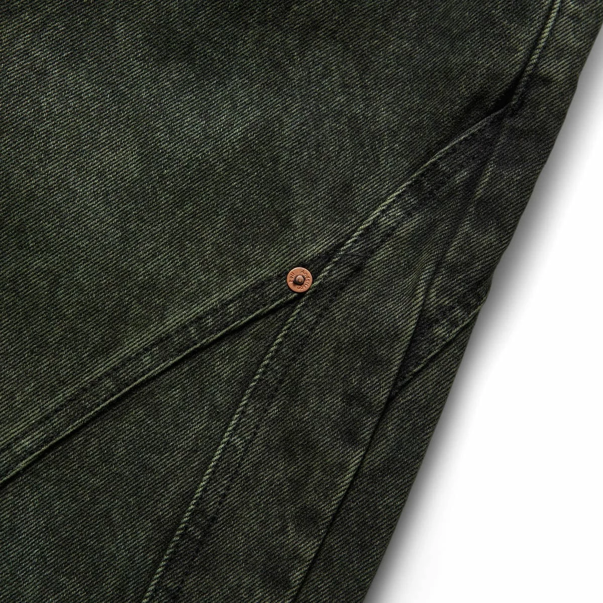 The Brick Curve Panel Wide Jeans see the double knee aesthetic and raises it to a whole other level. Symmetrical panels secured with rivets blend workwear and hippie style for a one of a kind DIY sensibility.Â
