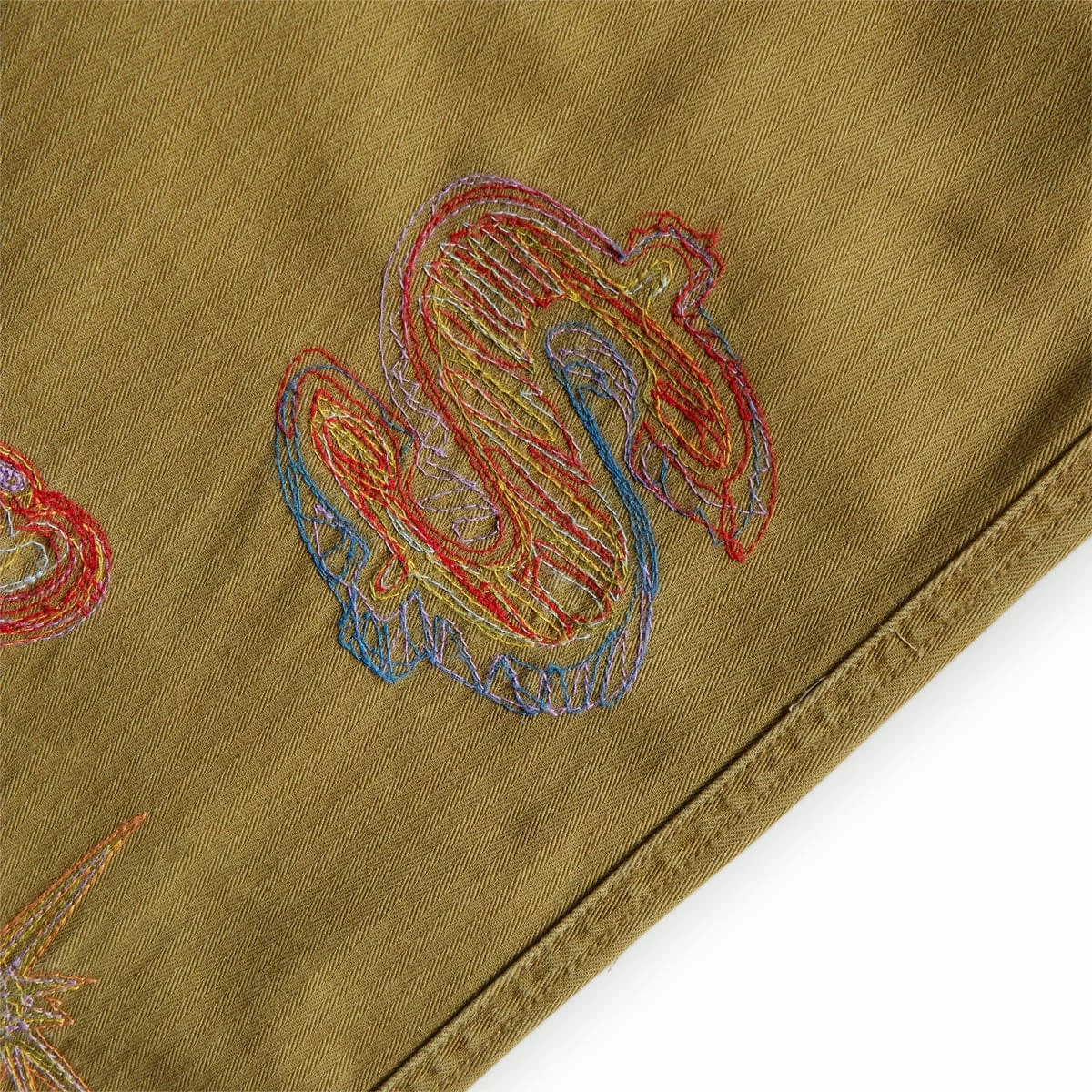 - Embroidered detail at front & back legs