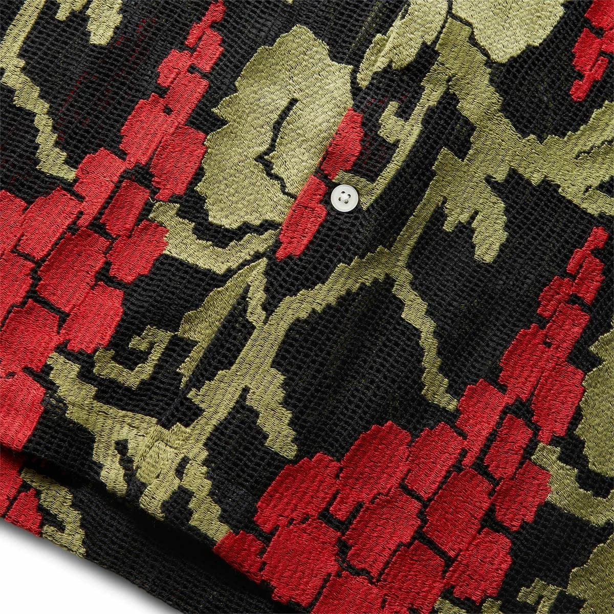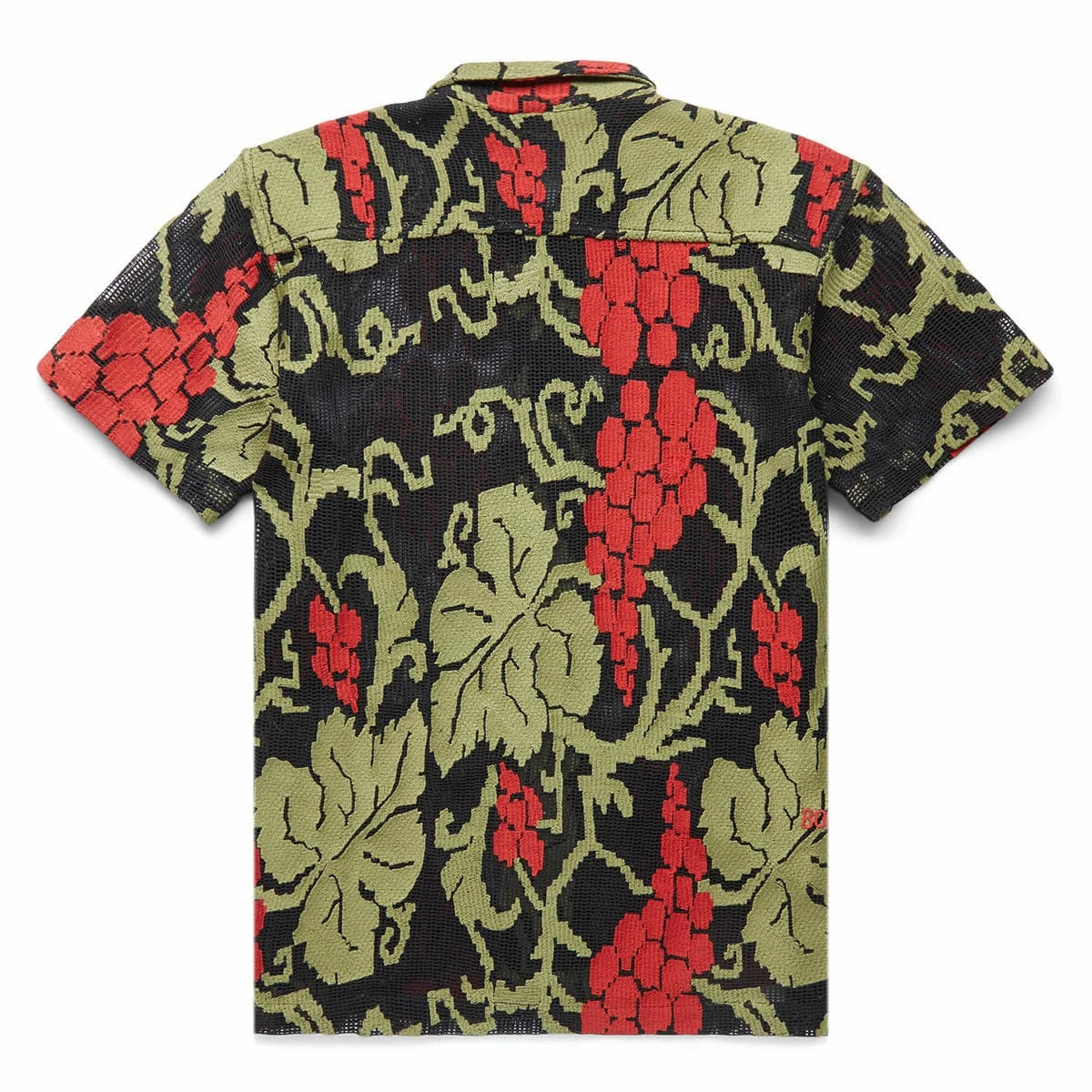 The Vinyard Mesh Short Sleeve Shirt is inspired by a 1920s dresser scarf. It features a faithful reproduction of the embroidered mesh with a grape and vine motif found on the original.Â
