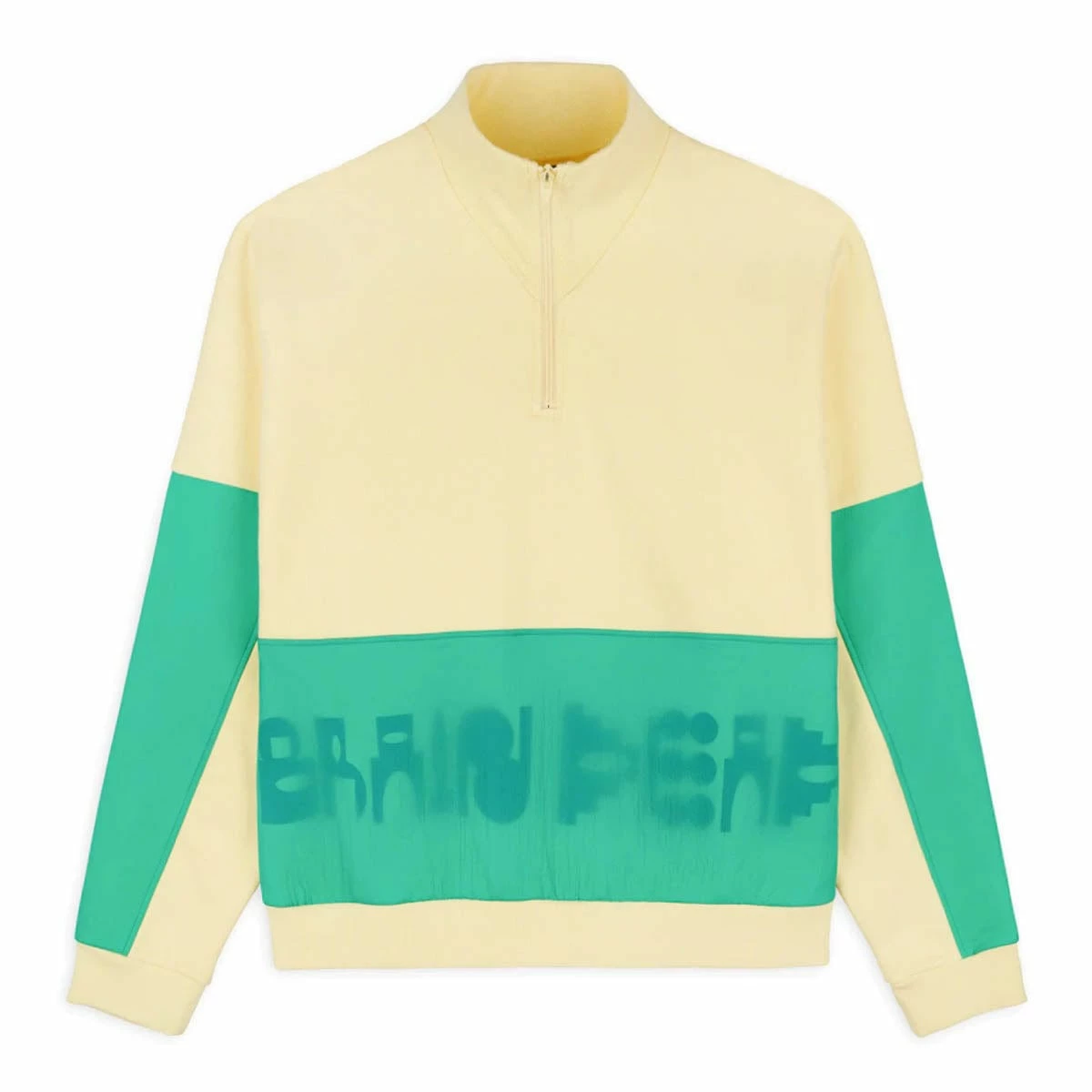 Our gastromaniac overlay half-zip fleece. Brain Deady typography printed on front.