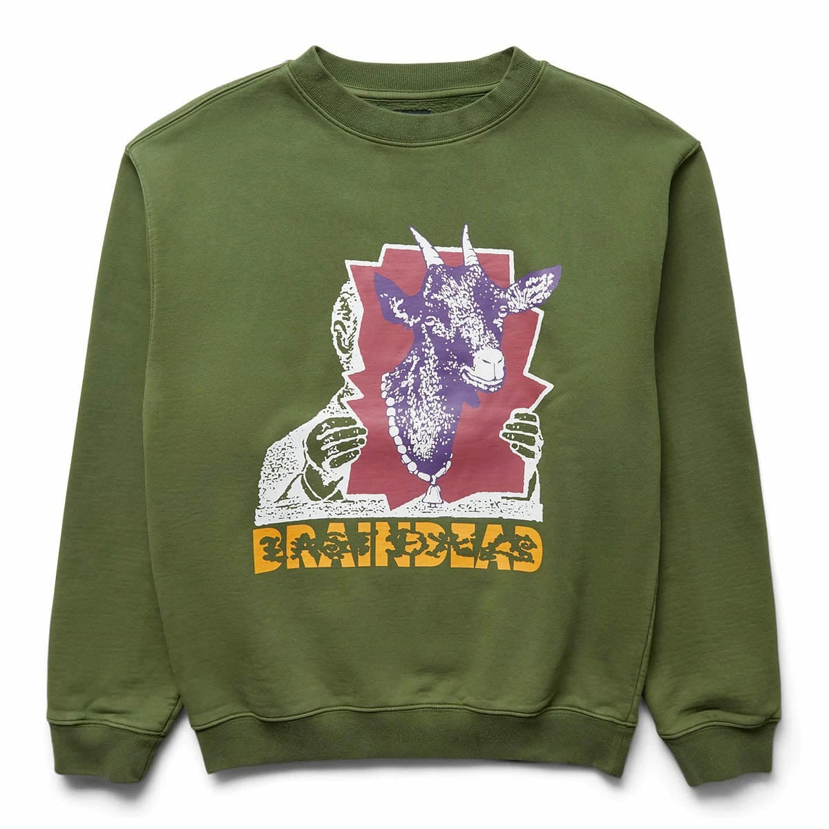 As a creative collective, Brain Dead is not based on one single person, nor one single idea. With its disruptive, graphic-led approach, the brand takes its cues from post punk, underground comics, skateboarding, and the spirit of subculture as a whole. With such an open design path, the brand is able to churn out innovative pieces, time and time again. The classic heavyweight fleece crewneck sweater with goat lady graphic printed on the chest.