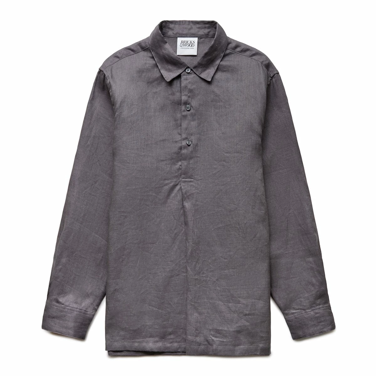 Whether taking cues from pullover work shirts from the turn of the 20th century or their ivy reincarnations in the 1960s, the Pop Over Shirt from Bricks & Wood is ready to add a subtle twist to any look. Constructed out of linen and coming in a Midnight colorway, this shirt flows perfectly so all you need to remember is pull over, then button up!