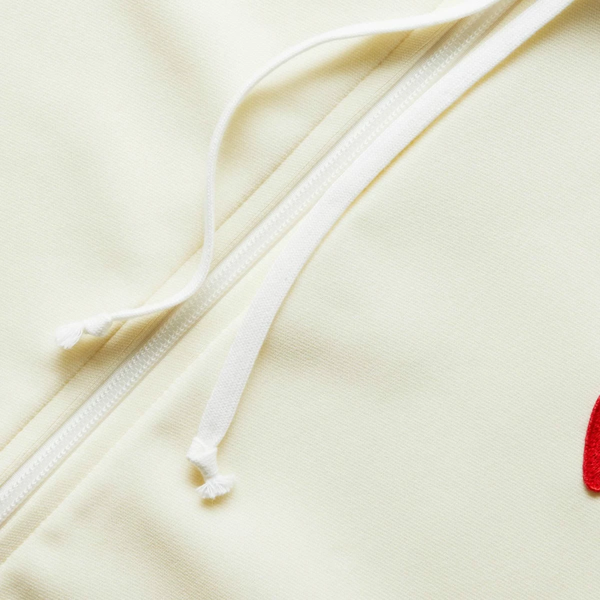 The Play Zip Hooded Sweatshirt in Ivory is a classic sweatshirt with hand warmer pockets and a big heart. Okay well more like a little heart with googly eyes but you get the point.
