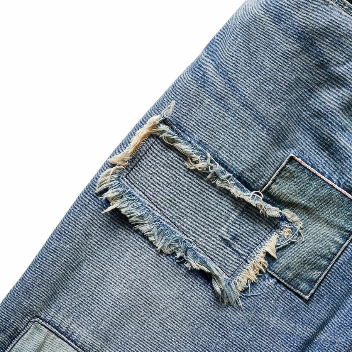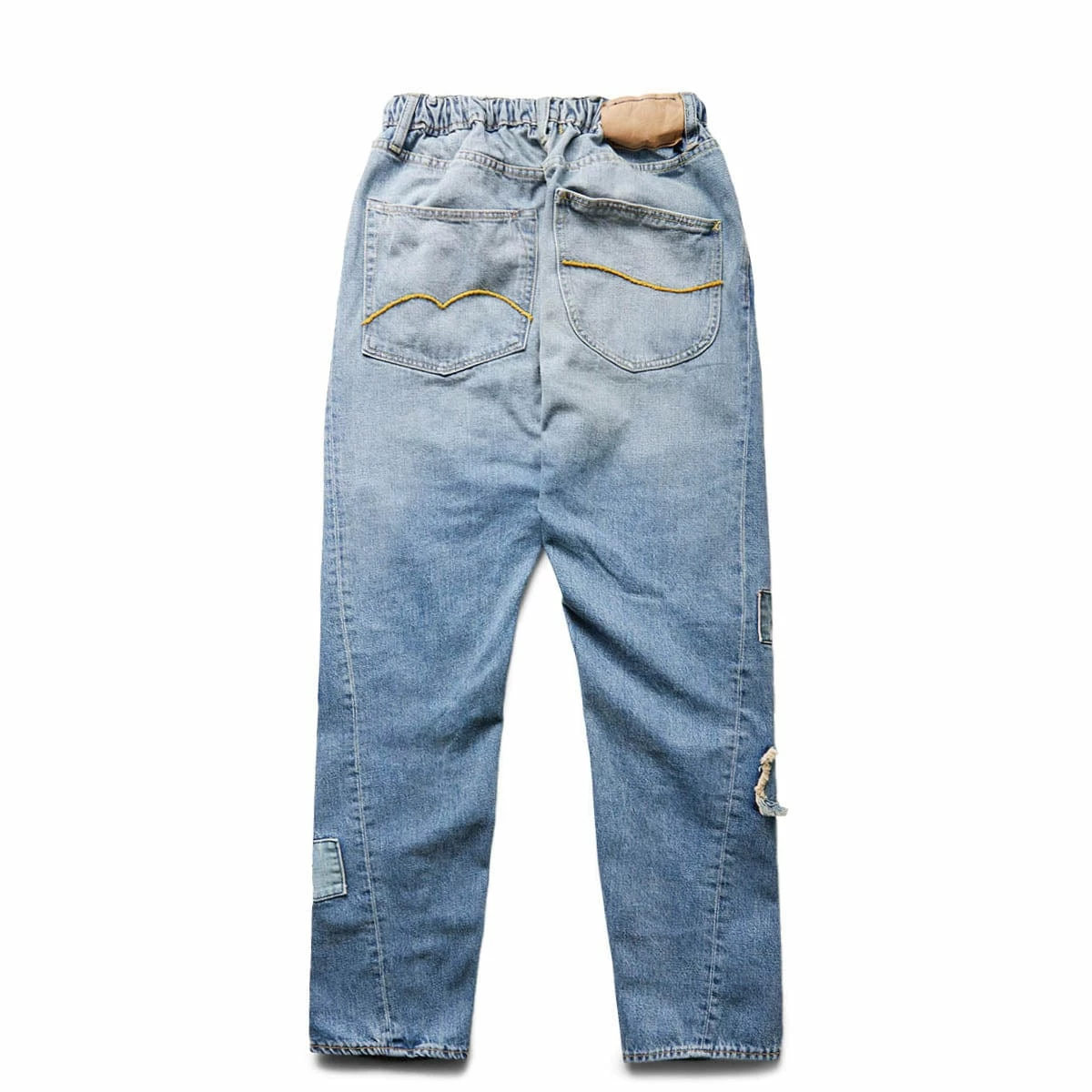 Dr. Collectors raises ‘pre-distressed’ to new heights with their P60 DR. LEEVI’S Denim Repair jeans featuring heavy fading and layers of repair work. Paying homage to the different aging processes of Levi’s and Lee jeans, this example is finished with a drawstring waist and stitched back pocket arcuates.