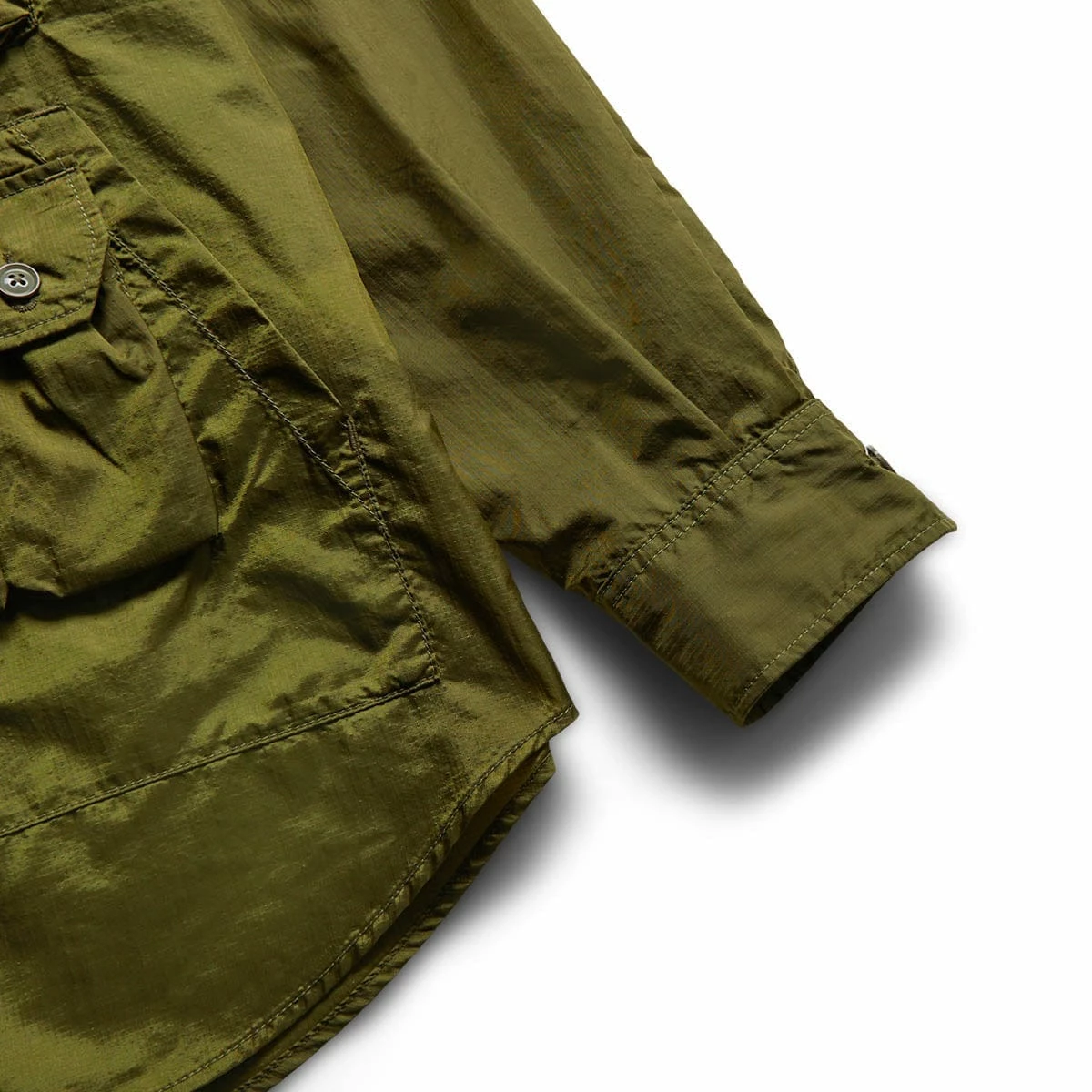 The explorer shirt jacket in olive cotton ripstop is a piece that feels like the perfect representation of Engineered Garments.
