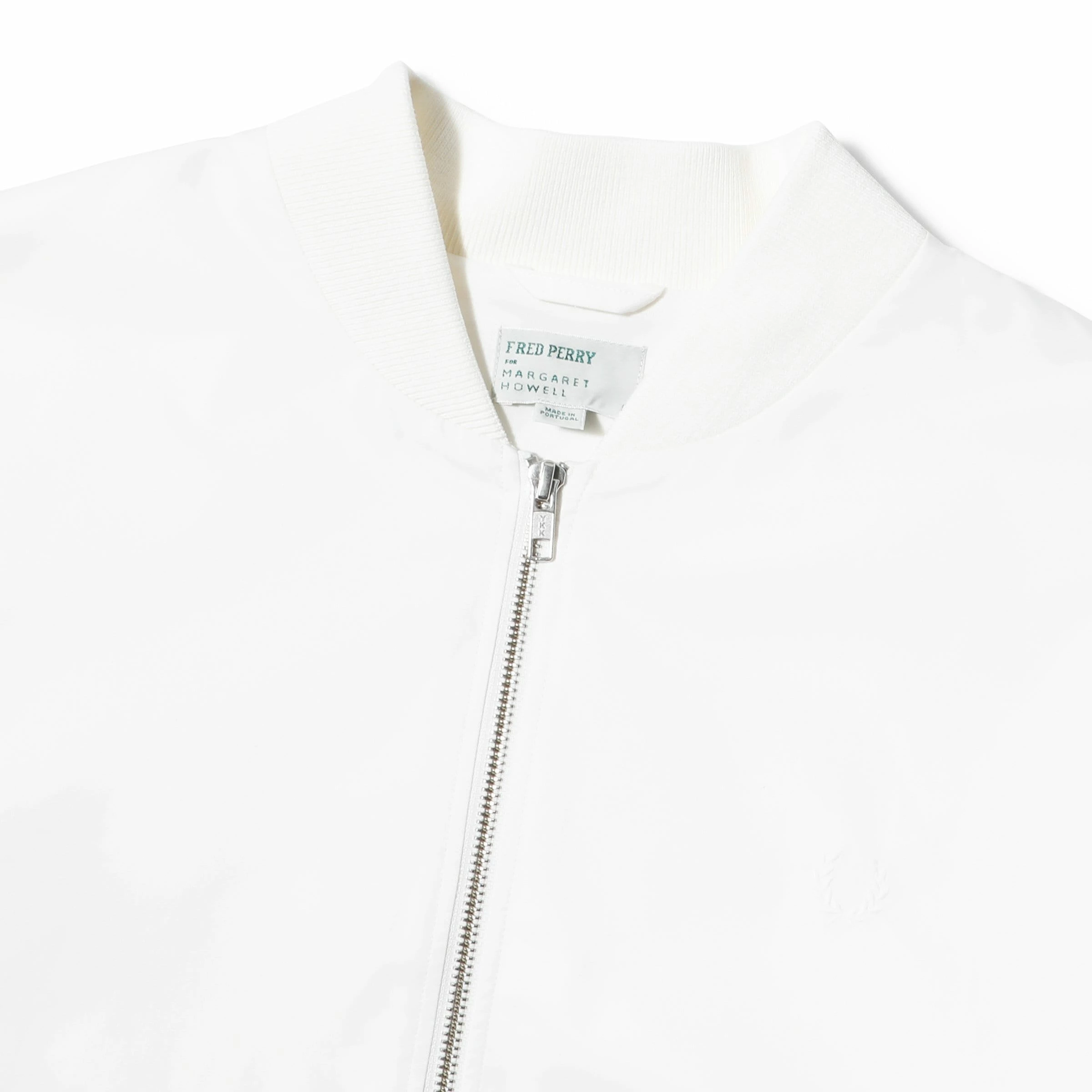 The bomber jacket is slightly oversized yet cropped, with a dropped shoulder fine ribbed hem. It is fully lined in a jersey cotton fabric.Â