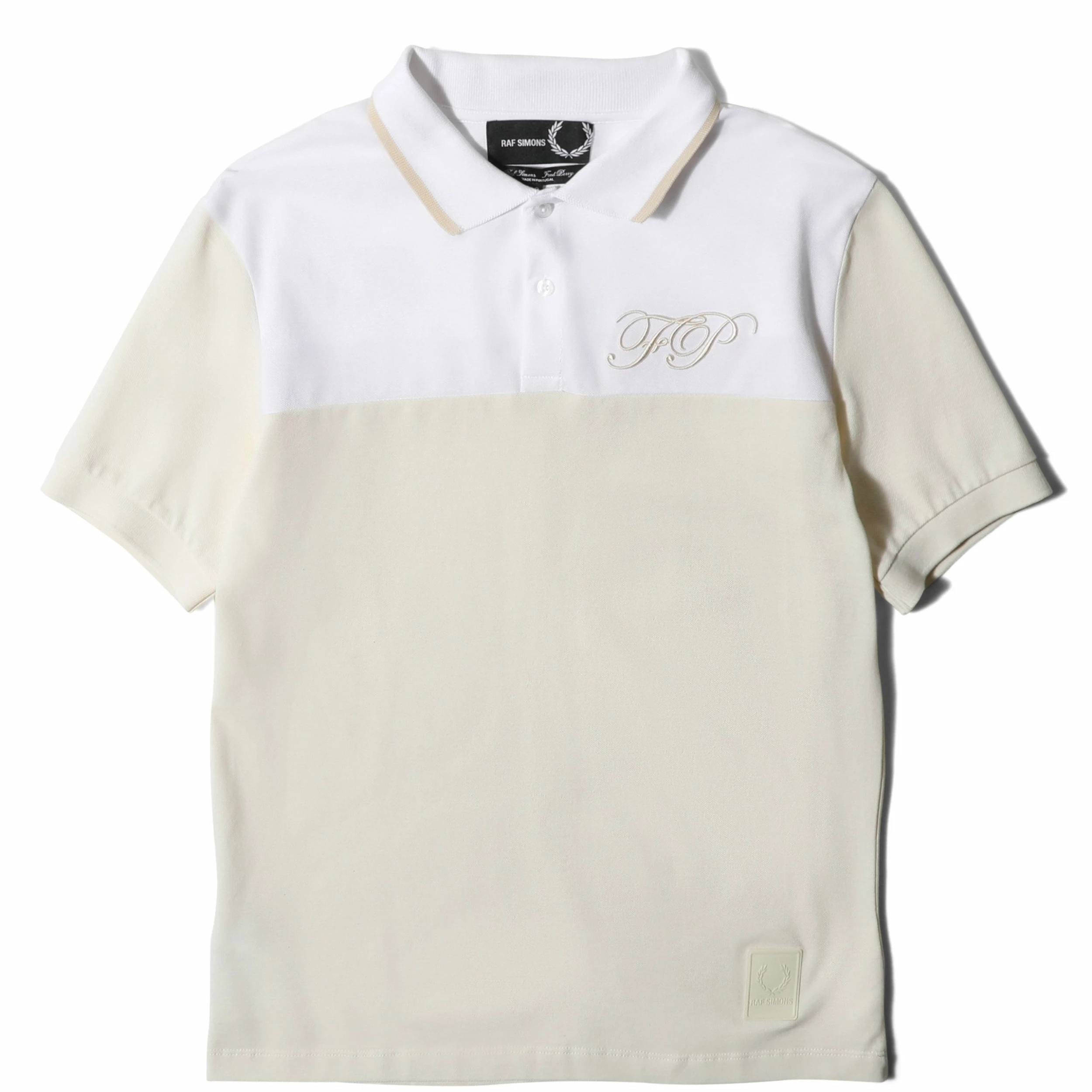 Raf Simons reimagines the Fred Perry shirt in a fine cotton piqué. Designed with tonal panelling and the collection’s signature initial embroidery on both sides. Finished with a bold single tipped collar, and a branded rubber badge at the hem.