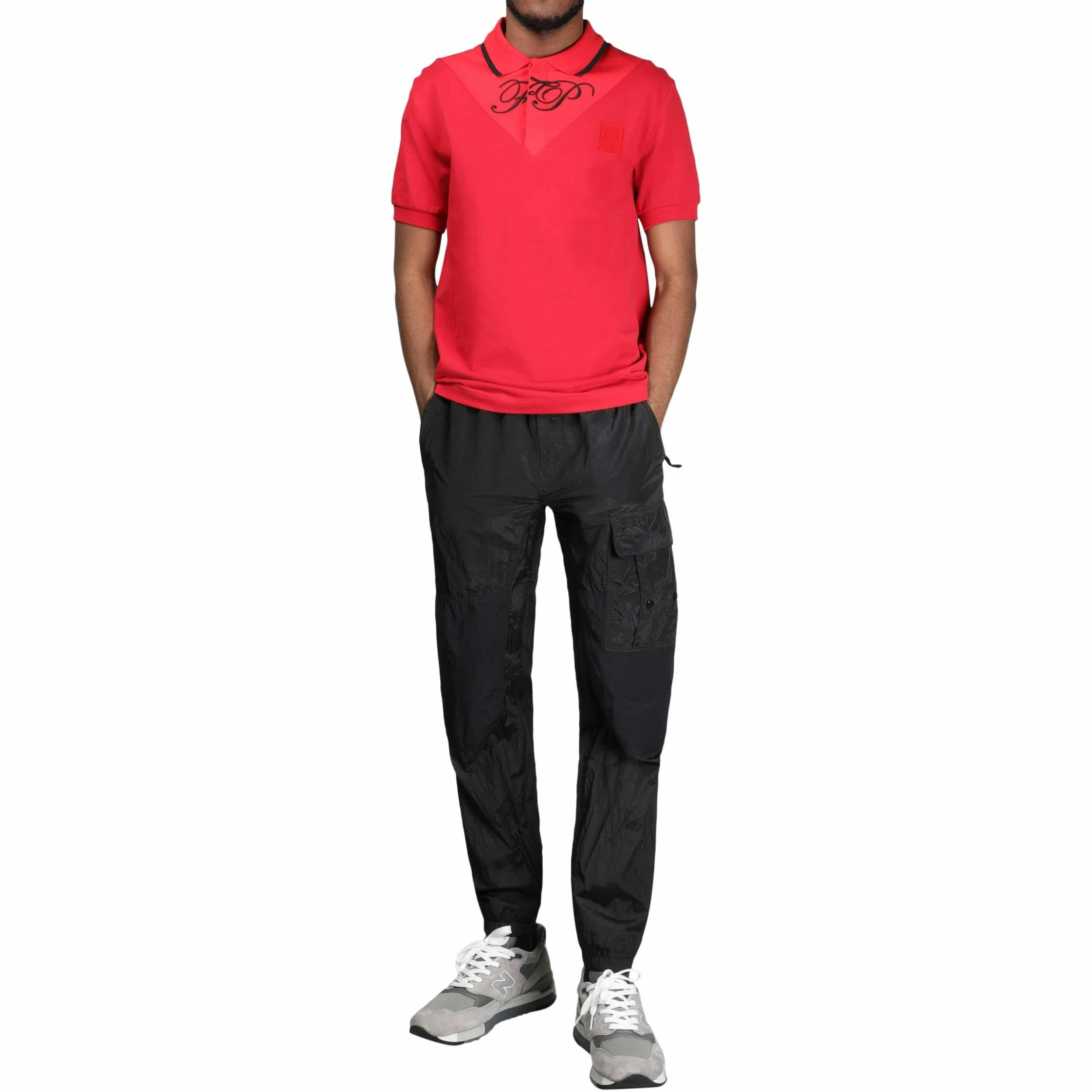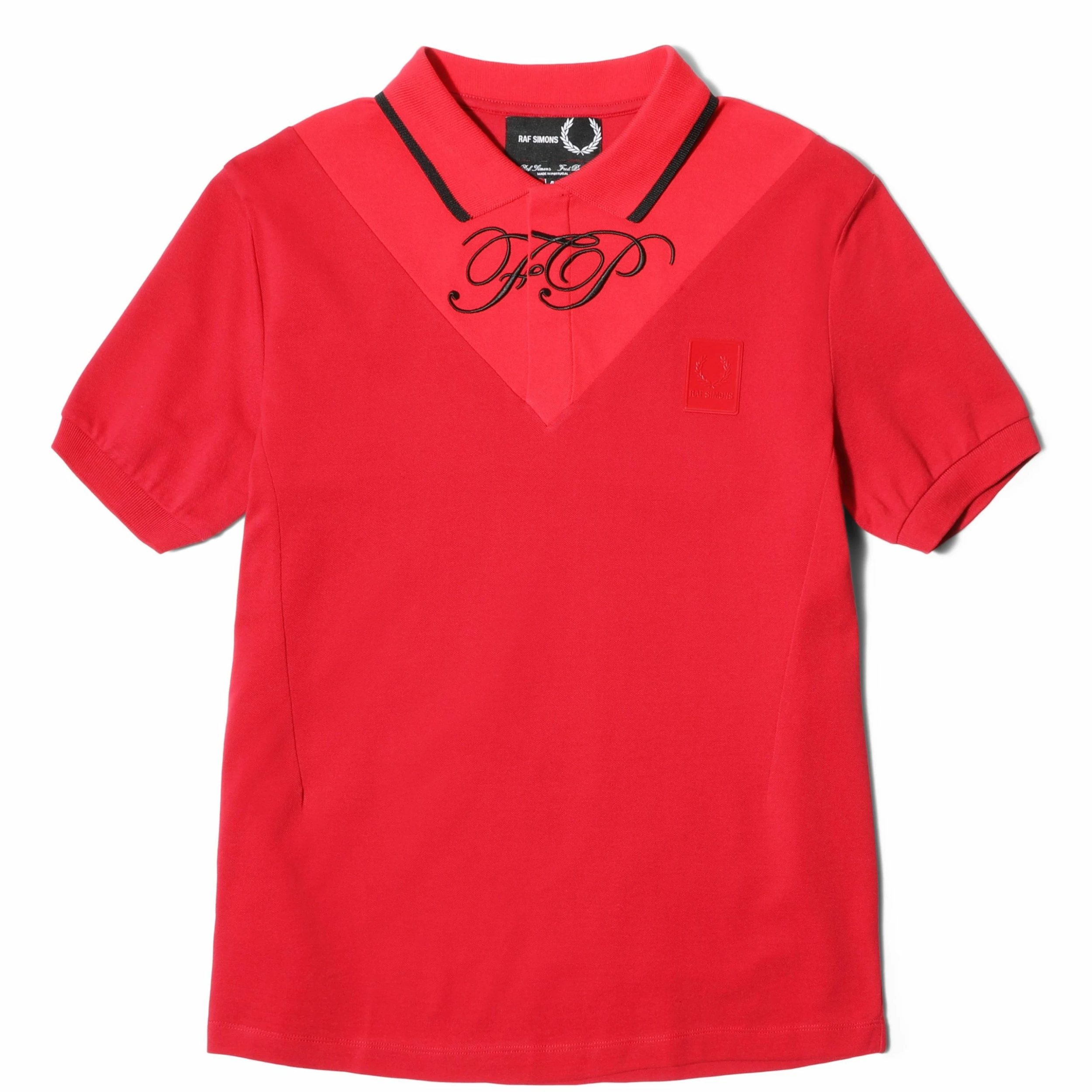 Raf Simons reimagines the Fred Perry shirt in a fine cotton piqué. Designed with tonal V-shaped panelling and the collection’s signature initial embroidery. Finished with a single tipped collar, and a branded rubber badge at the chest.