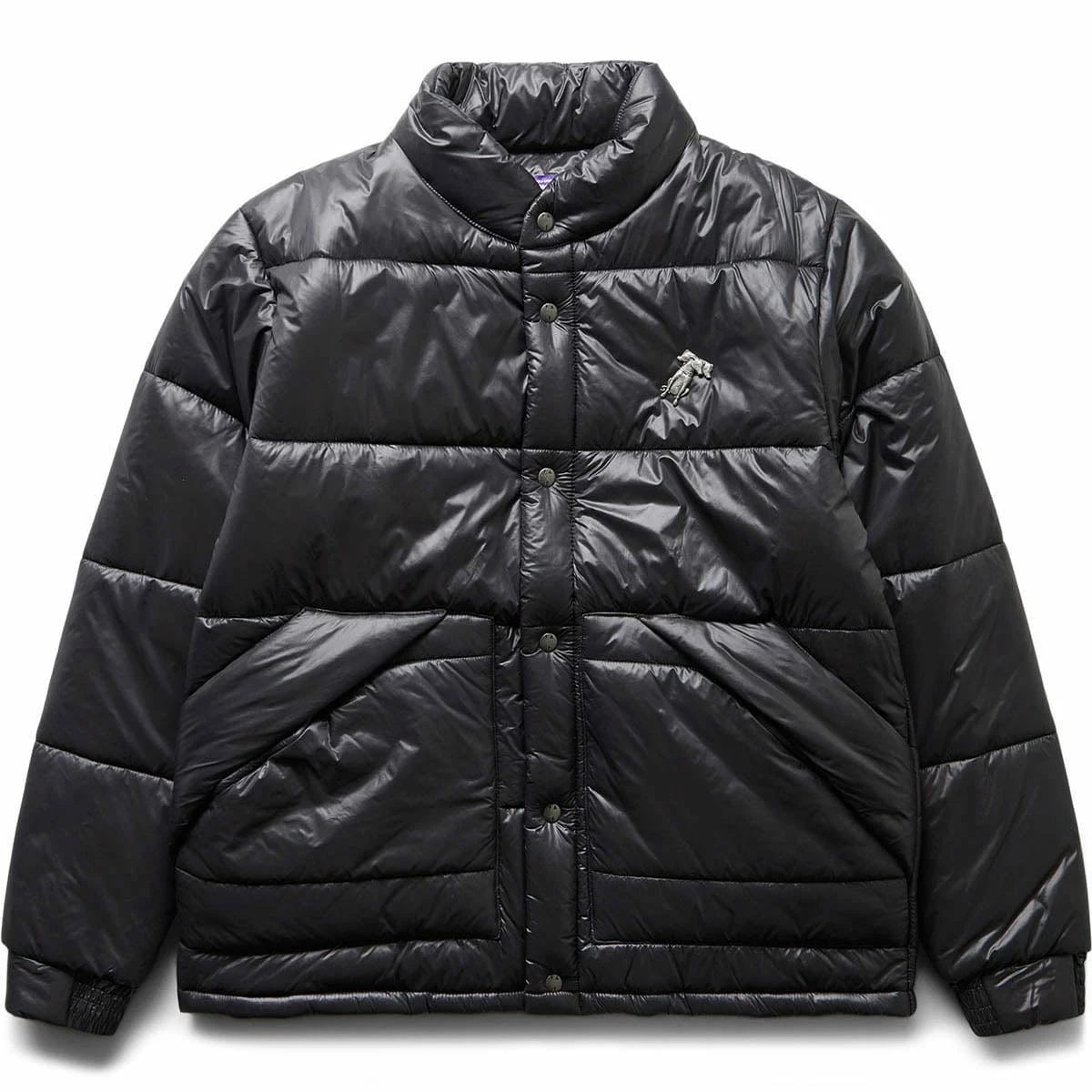 Antique Nickel “Fluffy Dog” Metal Pin at Chest on this puffer from FA.