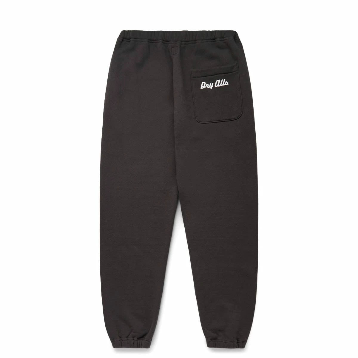 The Sweat Pants in a washed Black cotton features printed graphics on the front left hip and back right pocket while an elastic waist, ankle cuffs, and side pockets round out the design.Â