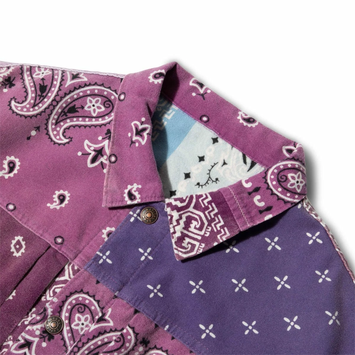 1st jacket made of flannel fabric. The processing technology faithfully reproduces the fading and texture of the vintage bandana with flannel fabric and raises it to create a pop patchwork pattern. It is reversible with double-sided printing, so you can enjoy it according to your mood.