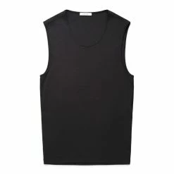 This tank top is made of a midweight jersey knitted into a flexible rib with a textured quality.