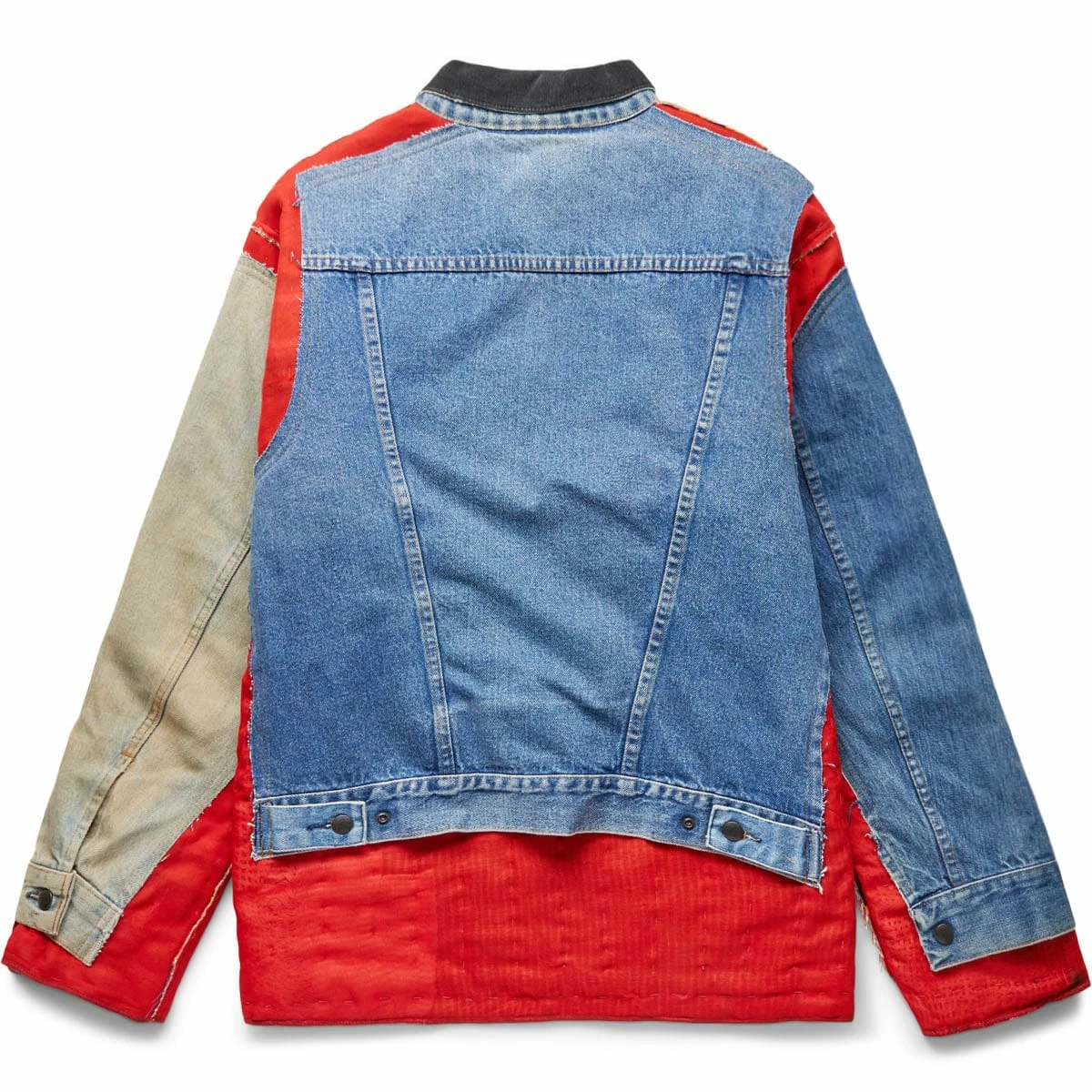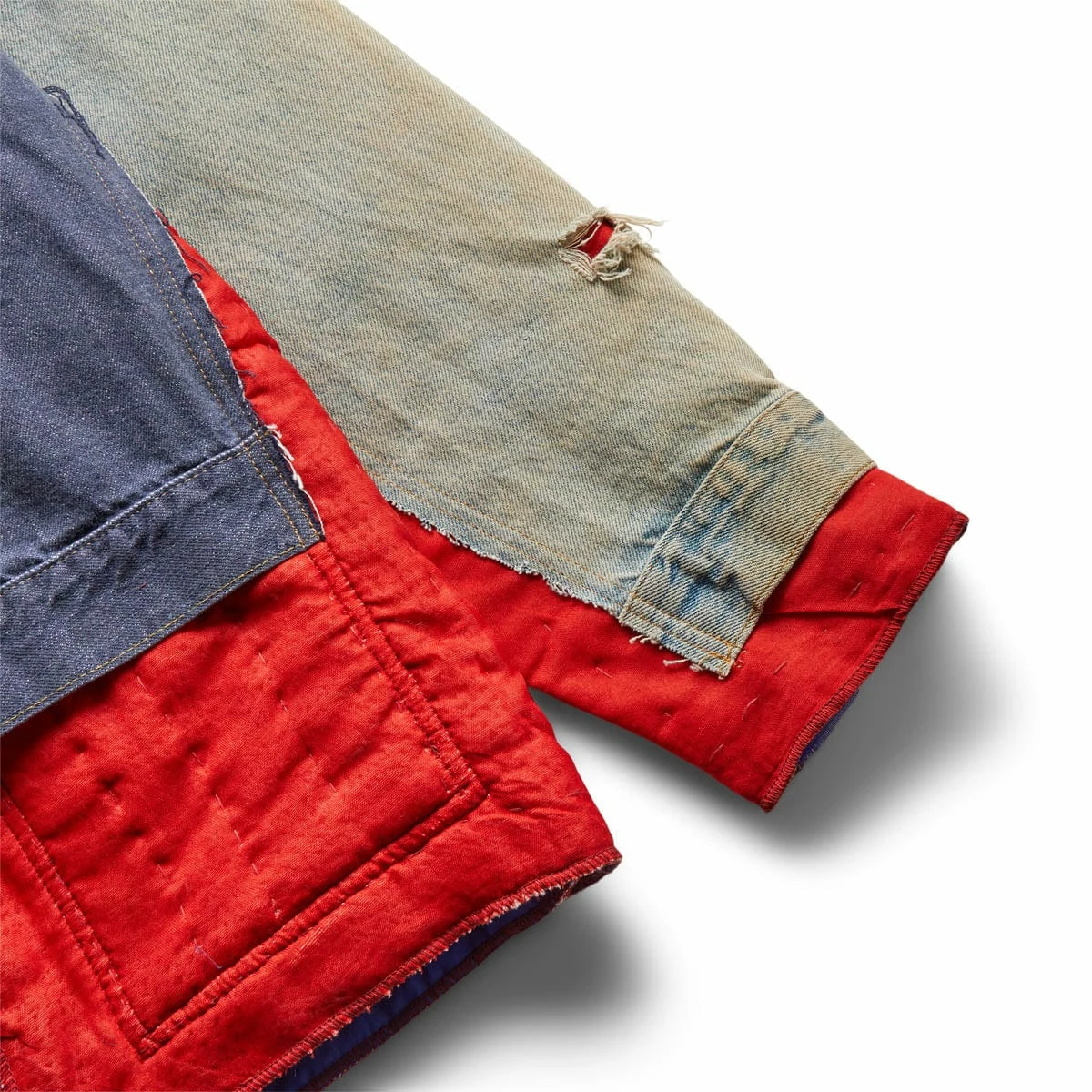 The Jean Jacket & Rug is a reversible jacket made with reworked denim and quilted rug fabric.