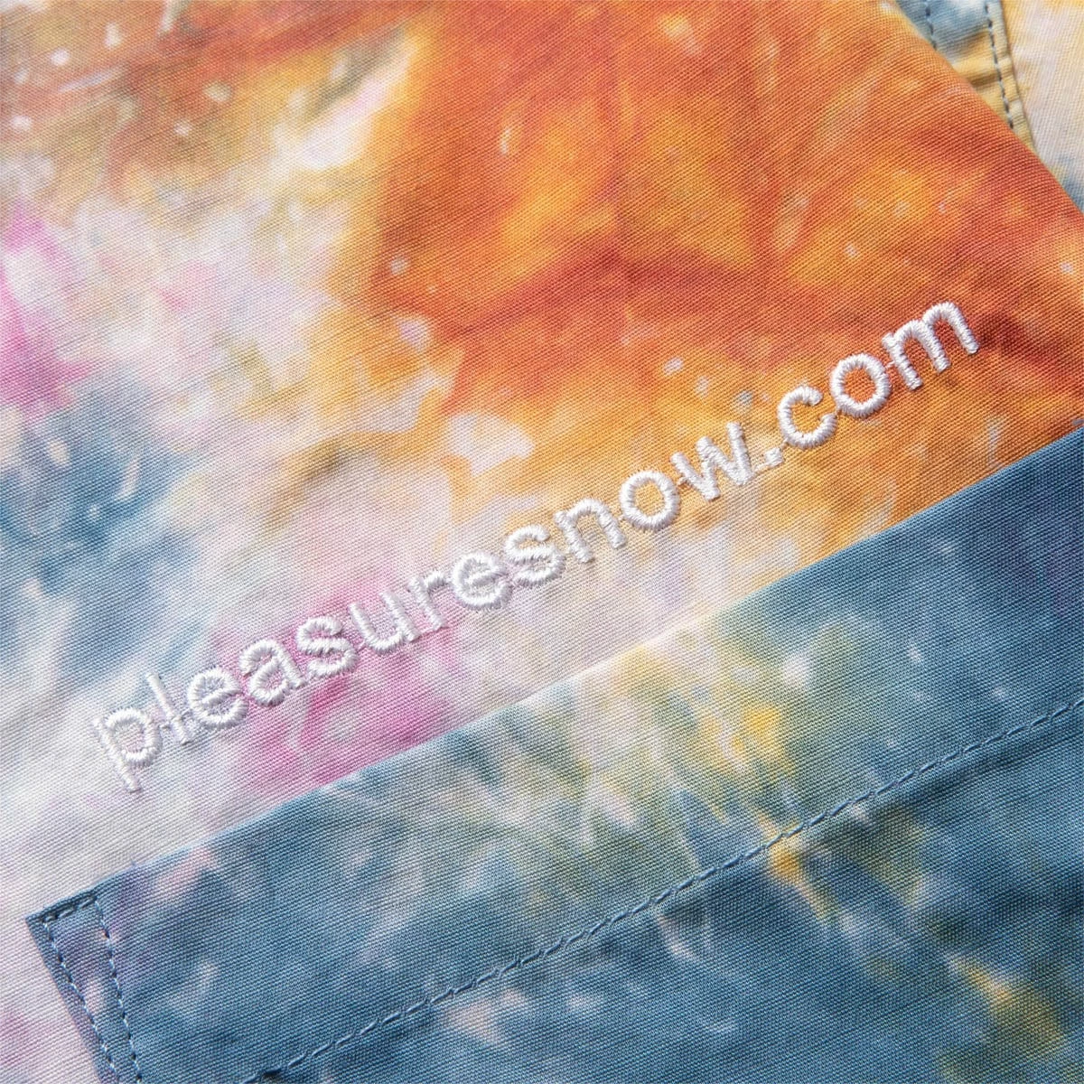 Not your average button down shirt. Pleasures presents the Dizzy custom dyed seer sucker shirt.