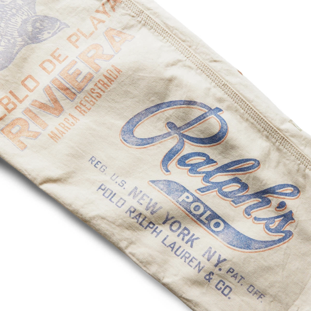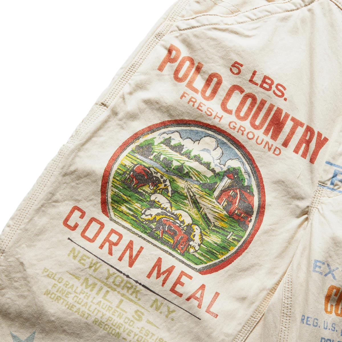 Modeled after some 50s-60s Carters work pants, the Painters Pant from Ralph Lauren uses custom feed sack graphics to mimic a cobbled together pair of pants made from the old school staple farming textile.Â