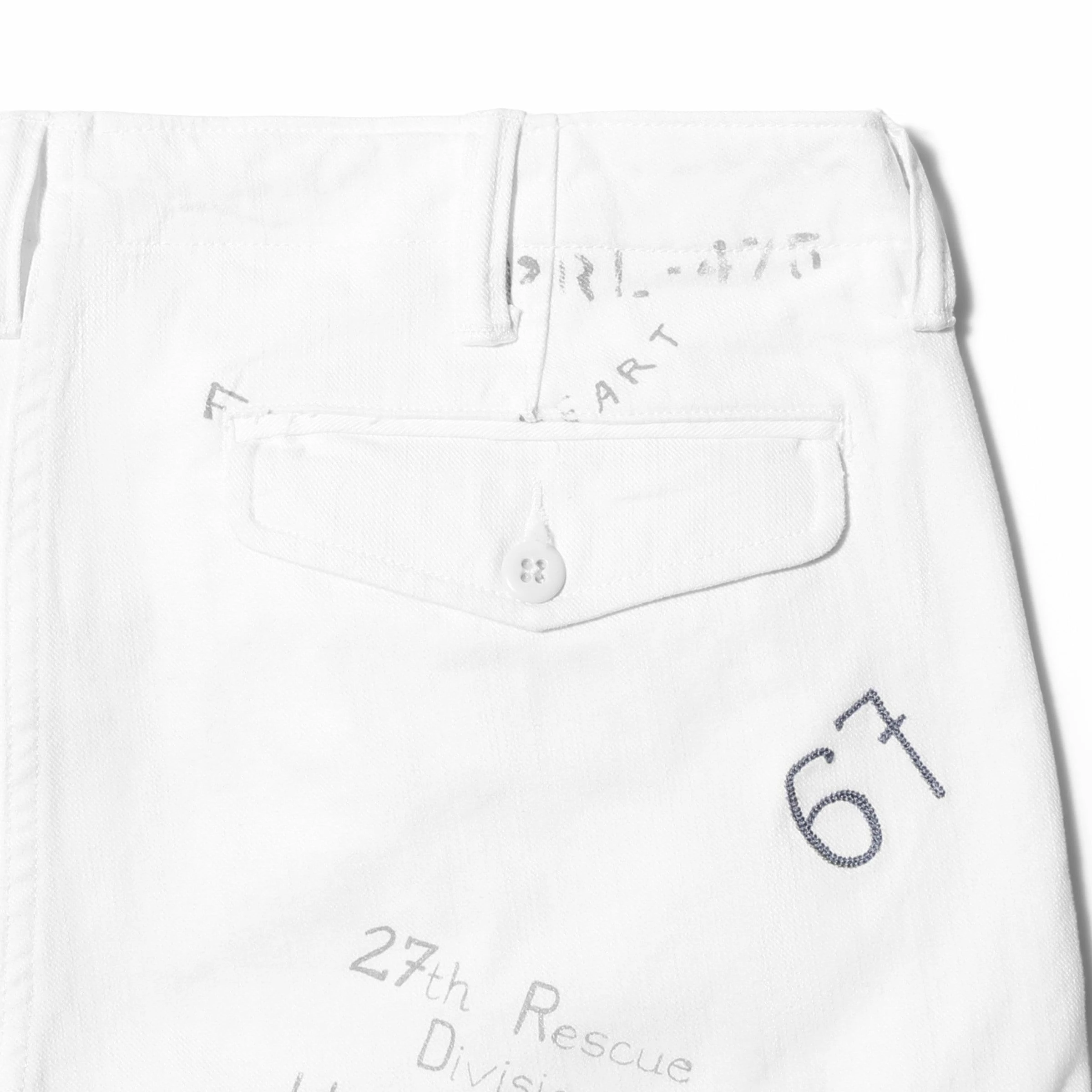 During the 1930s and 40s, turning garments into something of a wearable yearbook was a popular way to commemorate occasions like graduation and military service. Polo puts a distinctly nautical stamp on this convention for Spring/Summer, with a classic, white chino featuring U.S. Navy inspired artwork.Â