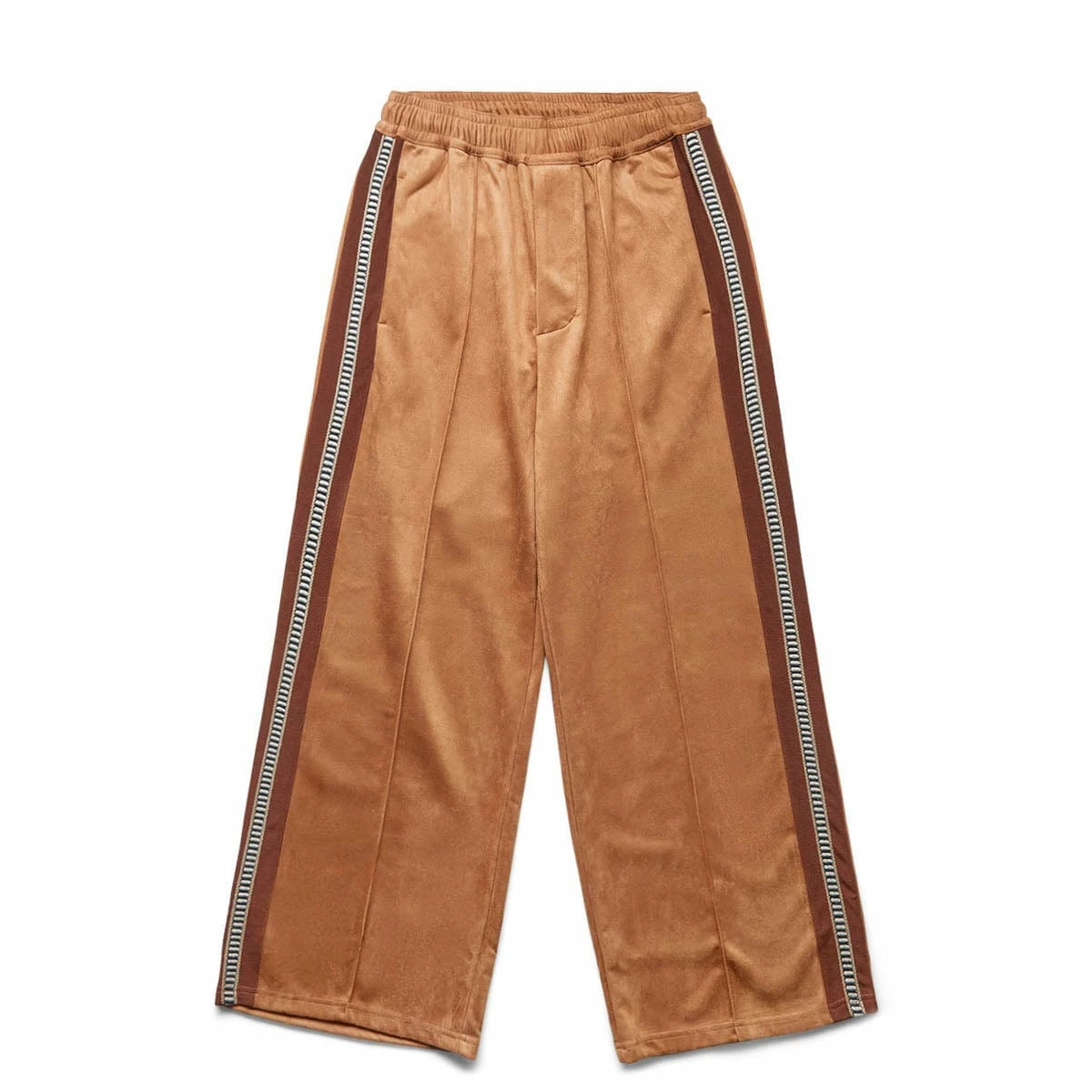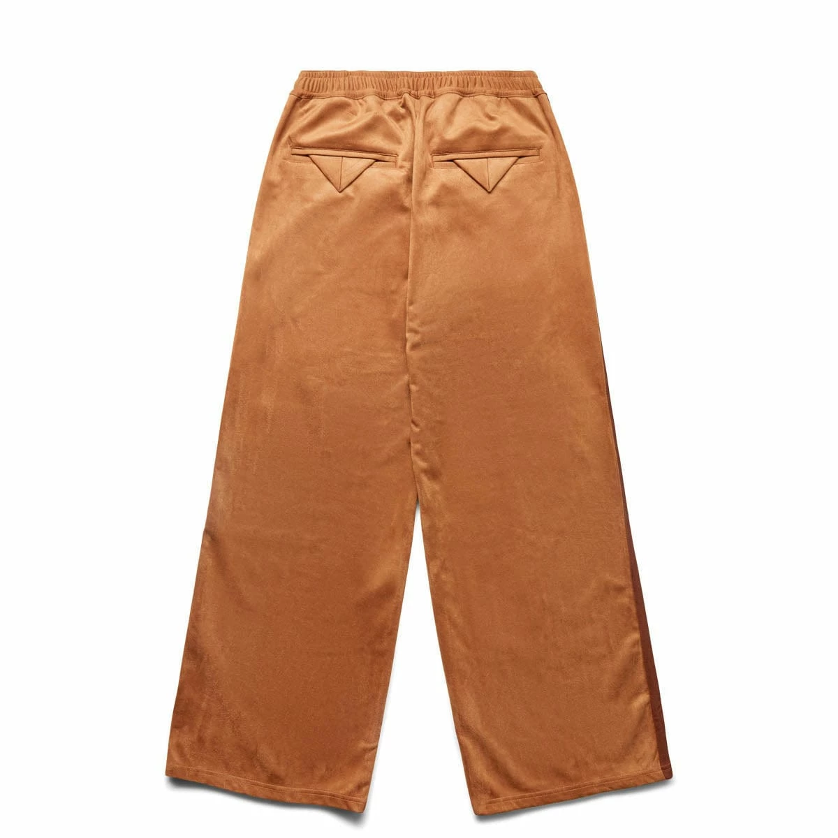 Not your average pair of track pants. Sasquatchfabrix presents the Faux Suede Flare Silhouette Track Pants in camel.