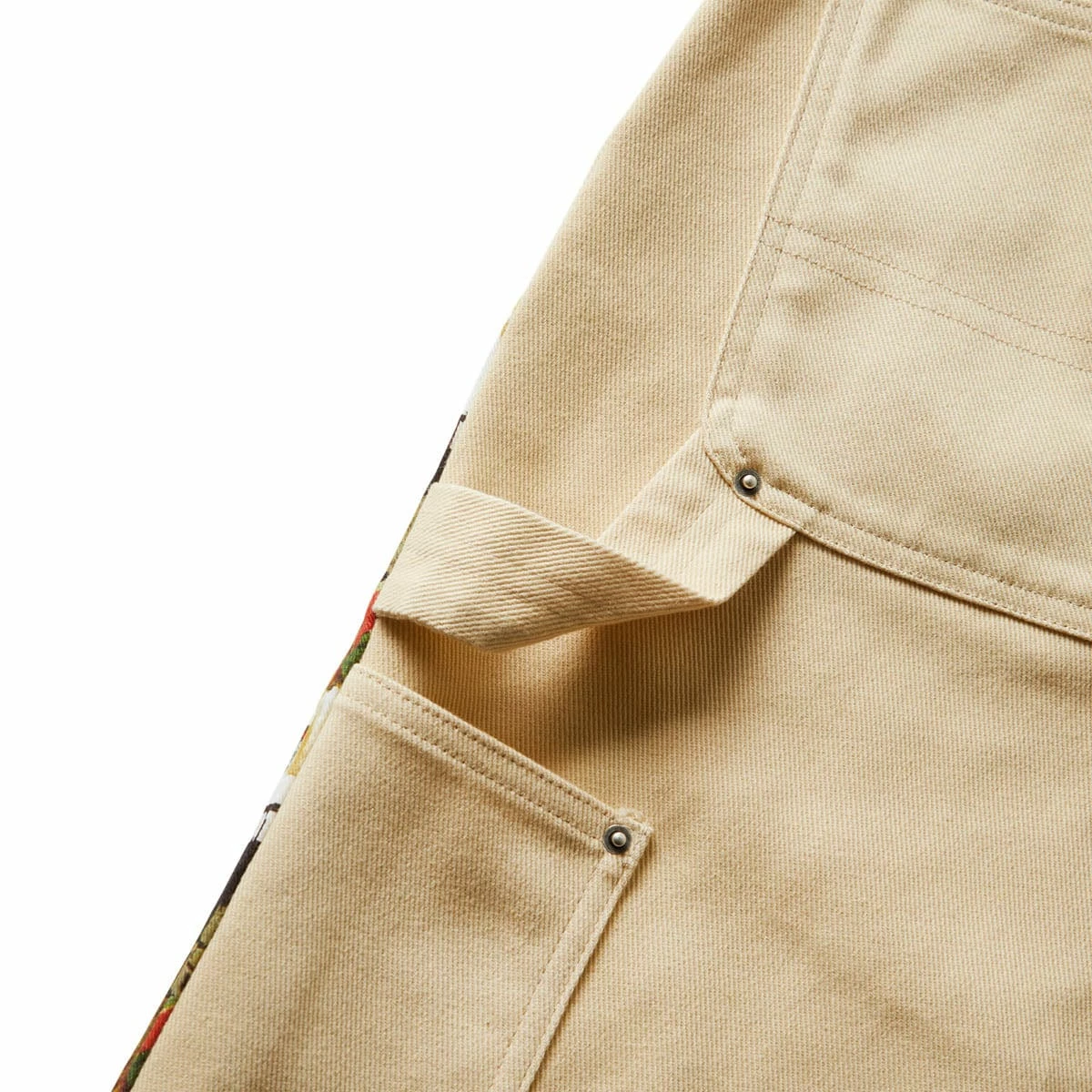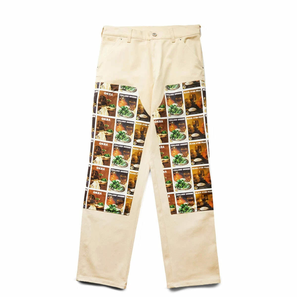 Tremaine Emory partners with Sky High Farm Workwear for a capsule collection that features the seeds of his community, and what he dubs Black Foods. These cotton canvas double knees, by Denim Tears for Sky High Farm Workwear, includes contrasting patches quilted in okra, black eyed peas, watermelon and collard greens.