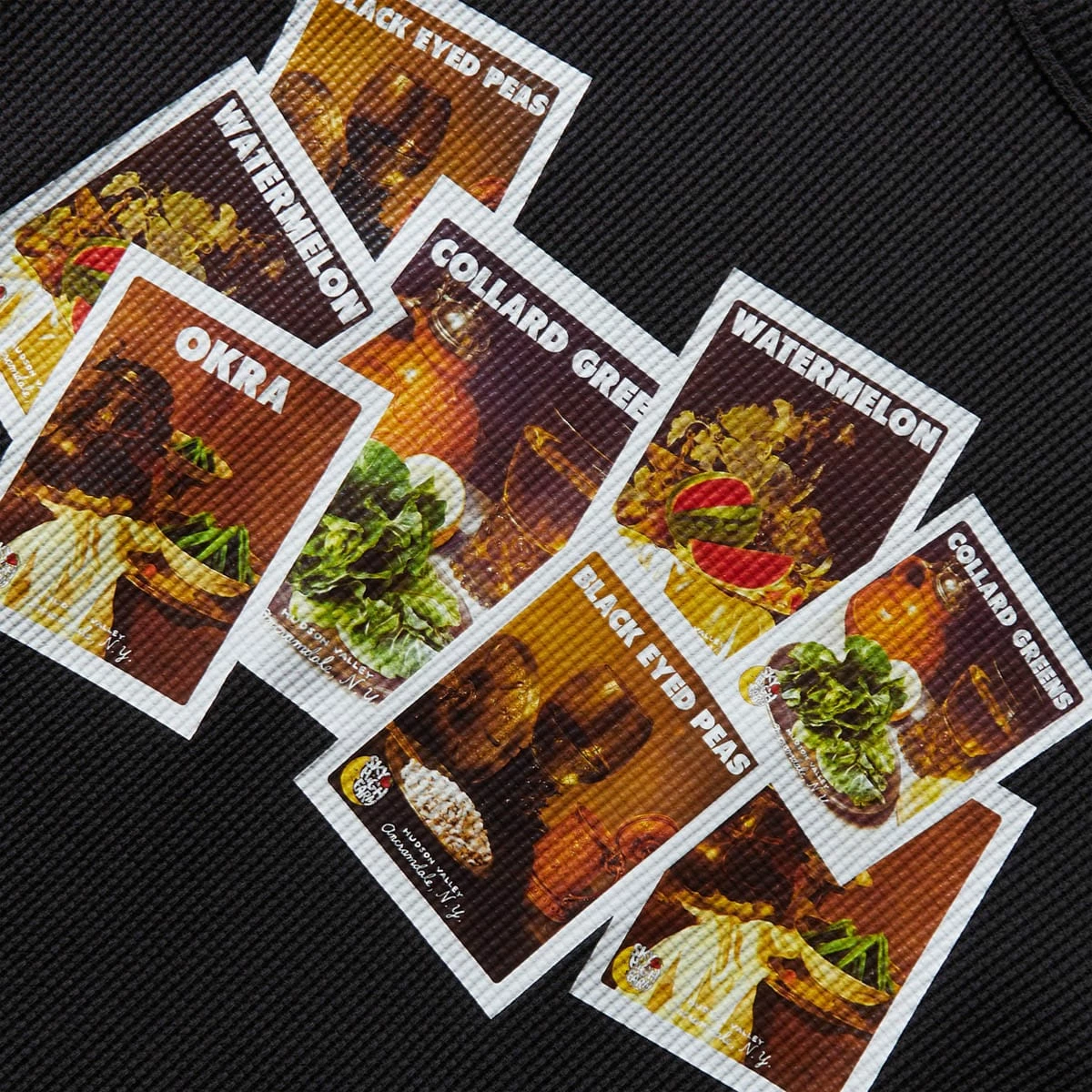 Tremaine Emory partners with Sky High Farm Workwear for a capsule collection that features the seeds of his community, and what he dubs Black Foods. These cotton canvas double knees, by Denim Tears for Sky High Farm Workwear, includes contrasting patches quilted in okra, black eyed peas, watermelon and collard greens.