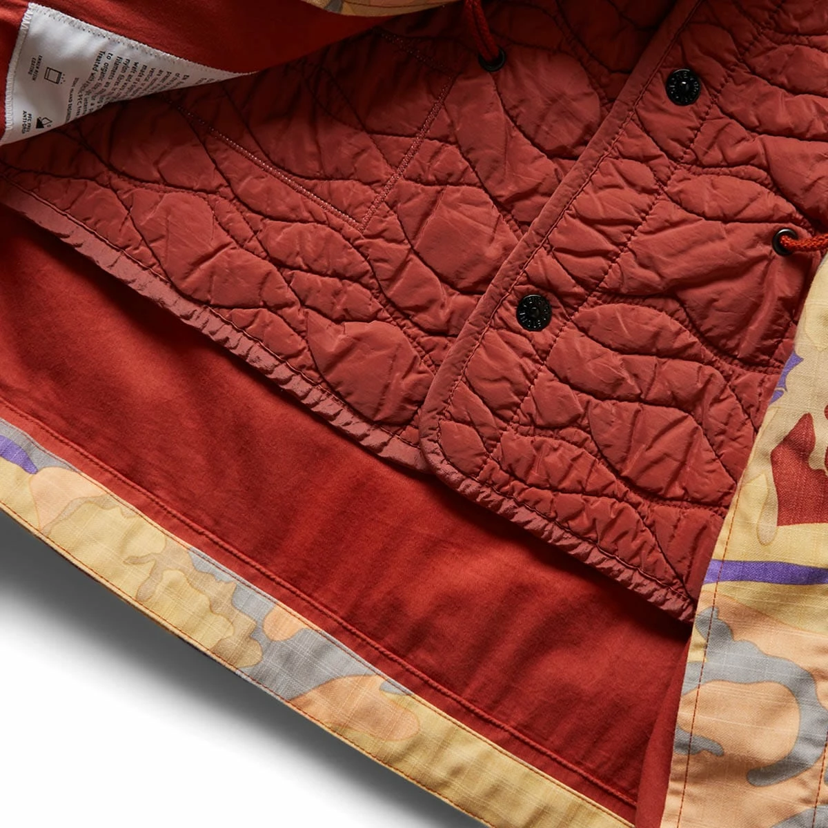 The Stone Island Field Jacket is made of a slightly slub weave ripstop both in the weft and warp, composed of mechanically spun nylon fibers.