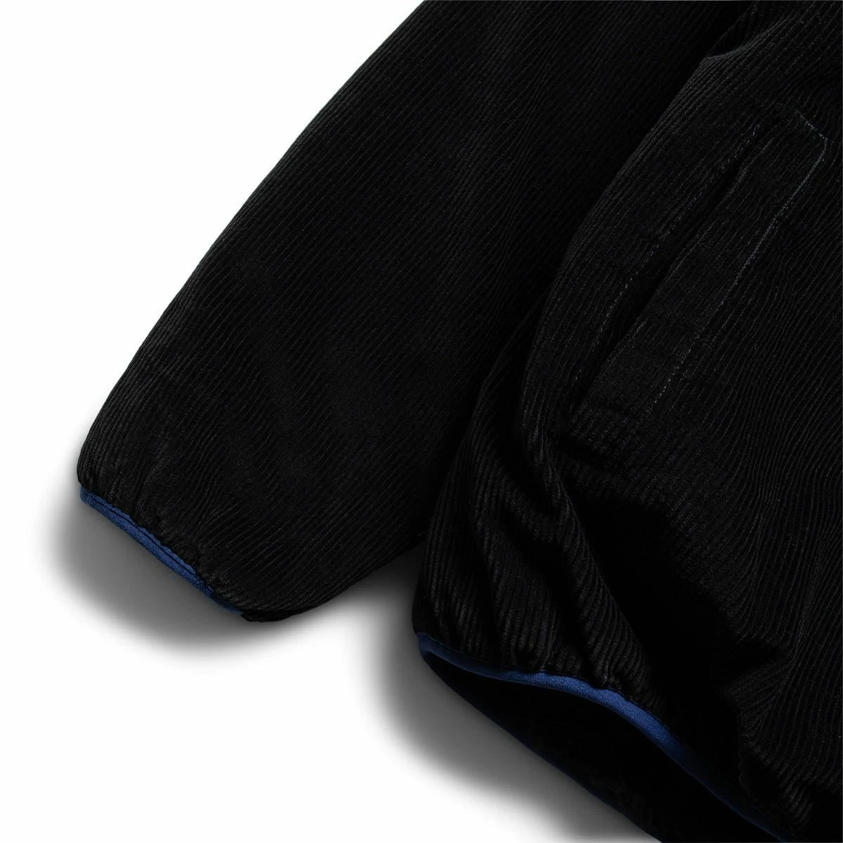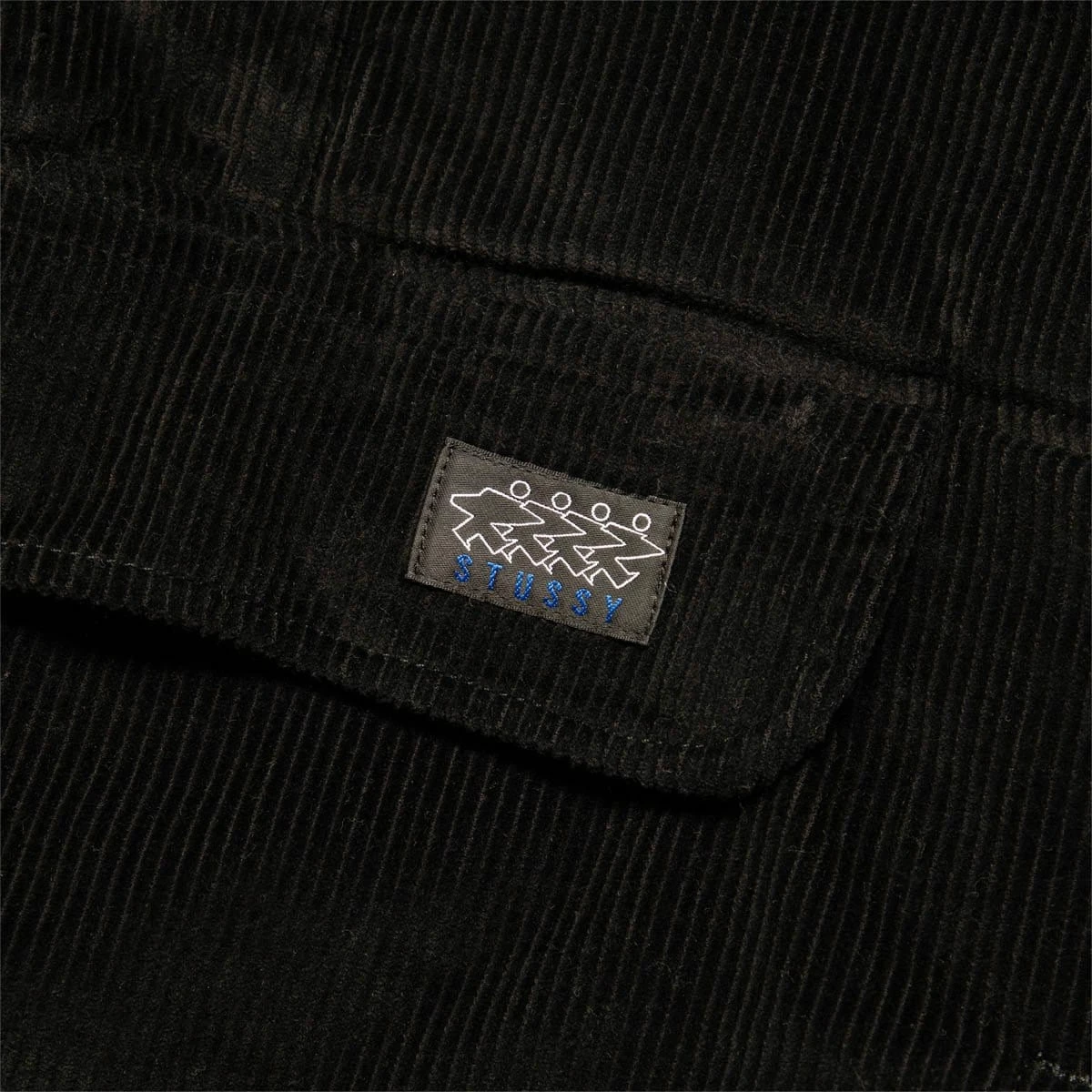 Corduroy half zip pullover. Fully lined sherpa interior, mock neck with concealed metal snaps, kangaroo pocket, and lycra bound cuff and hems. Finished with Stüssy Surfman label on front pouch pocket.