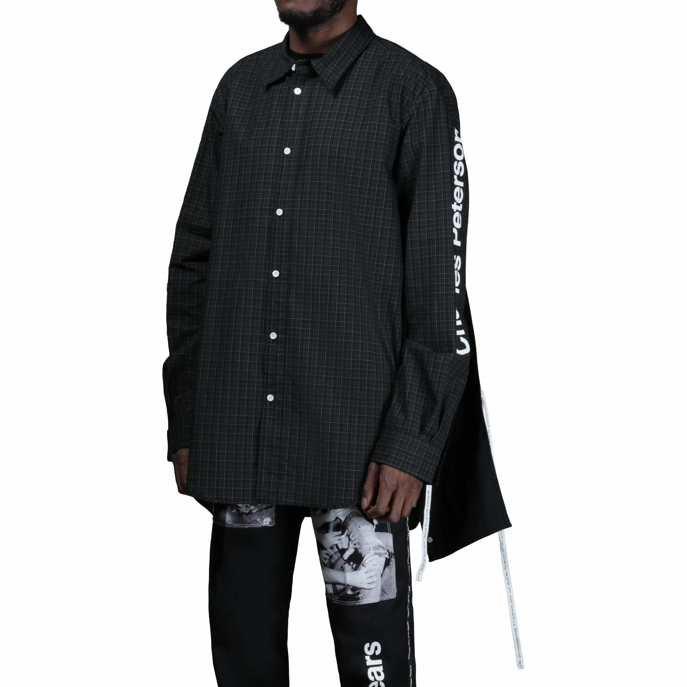 Peterson’s black and white photography didn’t just document the nascent musical movement that would eventually be labeled grunge; it mythologized it. Peterson’s sometimes blurred, sometimes light streaked, wide-angle action shots captured the total live experience, rather than lead singer glamor poses. This anti-rock star ideal is replicated throughout the Spring/Summer collection, as the photographs become an aspect of Miyashita’s larger, intricately tailored, progressive aesthetic, rather than a singular focus.